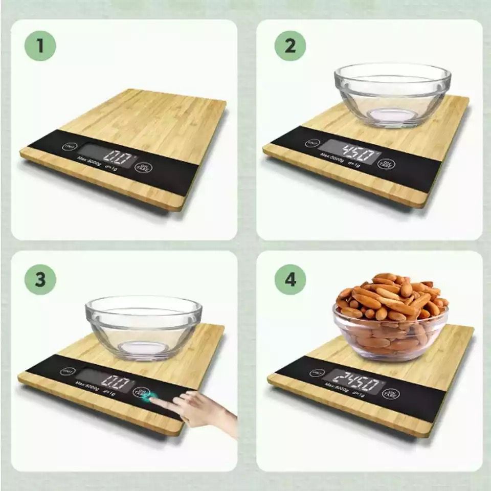 Balance Cuisine Numérique en Bois Bambou avec Batterie