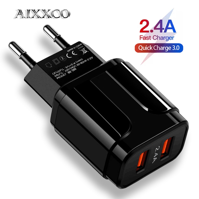 AIXXCO 5V 2A prise ue lumière LED 2 adaptateur USB téléphone portable chargeur mural dispositif Charge rapide QC 3.0 chargeur Mobile chargeur rapide
