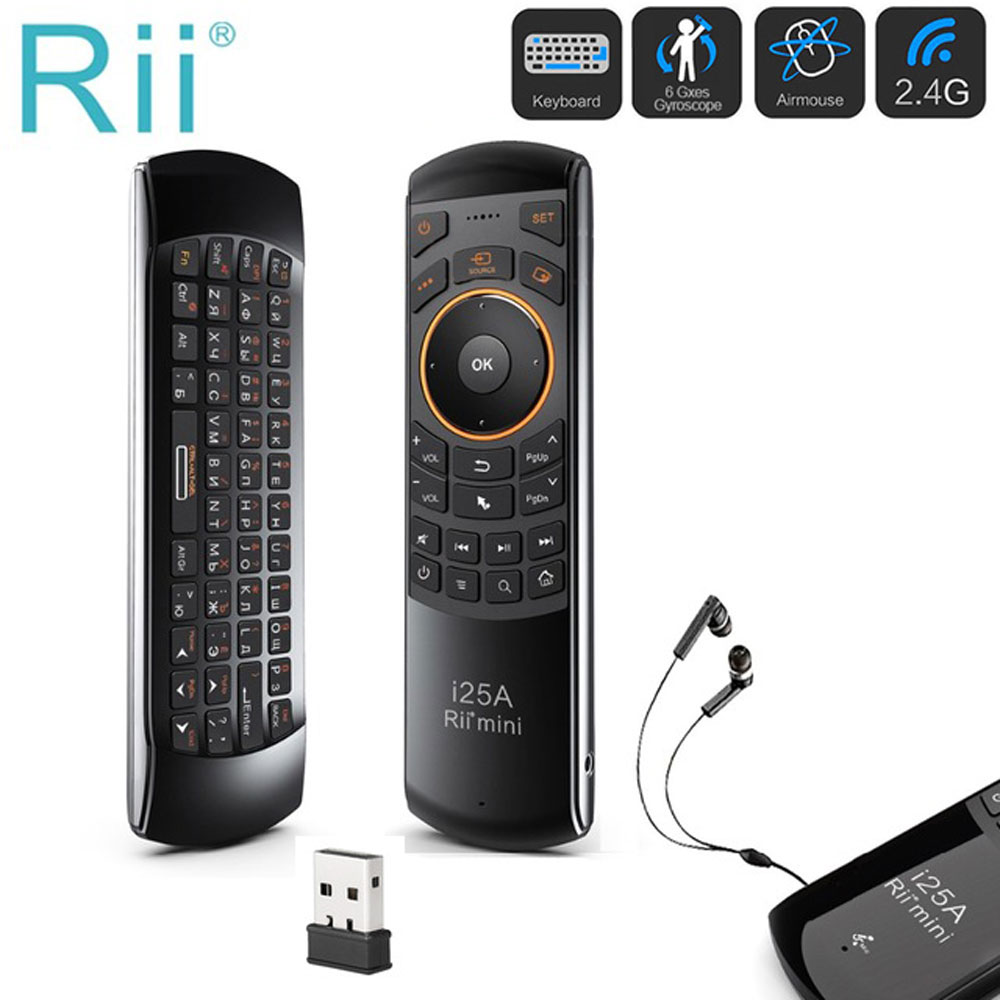 2.4Ghz sans fil mouche Air souris télécommande Rii i25A russe/anglais clavier Mini avec fonction d’apprentissage IR pour Android TV Box