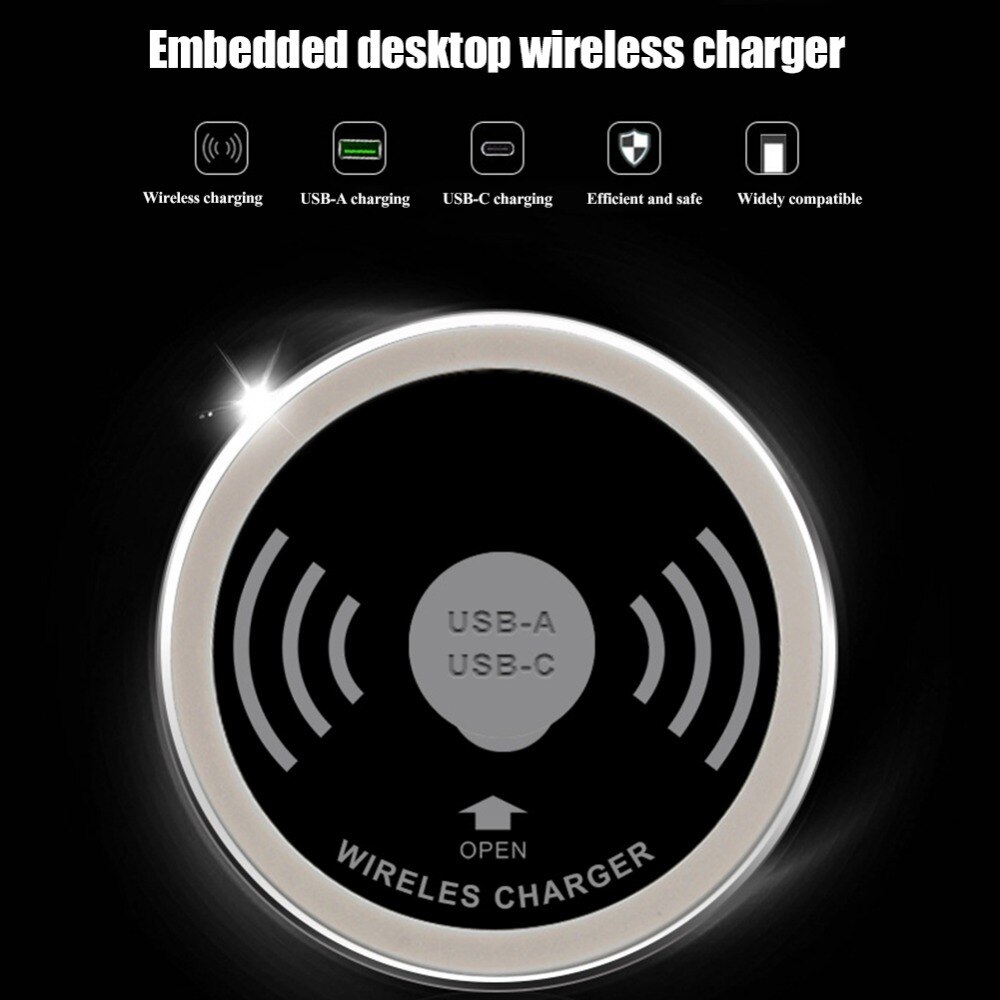 Appareil de bureau intégré Qi Chargeur rapide sans fil 15W 10W 7.5W Chargeur rapide 3.0 intégré Caricabatter Tipe C Chargeur Induction