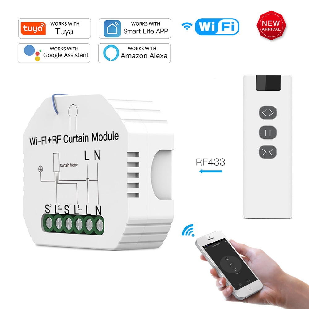 WiFi bricolage RF433 Module de commutateur de rideau intelligent pour moteur de volet de stores motorisés électriques, télécommande APP vie intelligente/Tuya