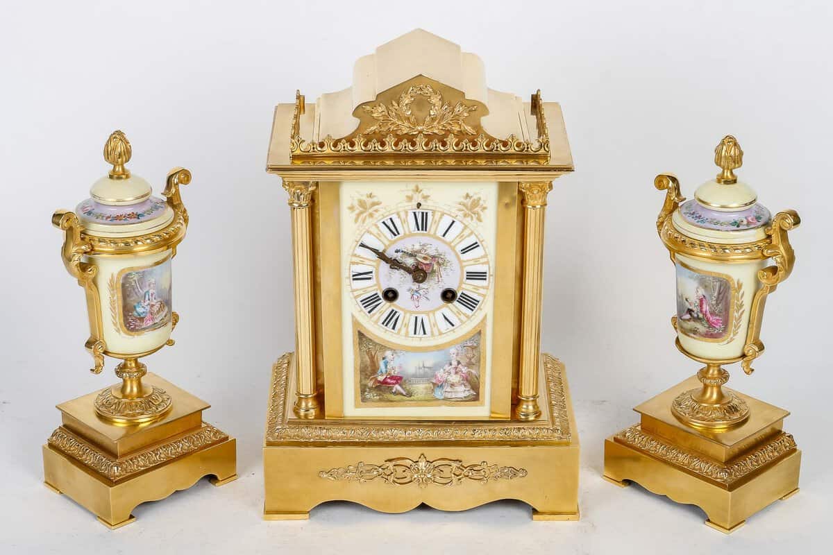 Garniture en bronze doré et porcelaine fin XIXème siècle