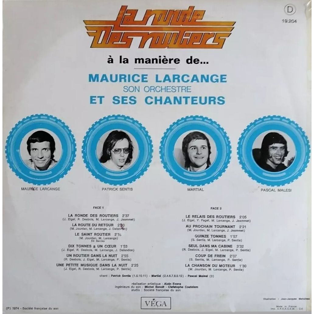 Disque Vinyl 33T MAURICE LARCANGE, orchestre et chanteurs LA RONDE DES ROUTIERS par VEGA 19.204