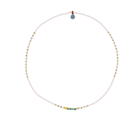 Découvrez notre bijou Andy Rose Champagne, une création épurée composé de perles japonaises Miyuki et de Rocaille africaine multicolore. Il peut être porté en collier ras de cou ou en bracelet. Il incarne délicatesse et élégance, ajoutant ainsi une touche de douceur.