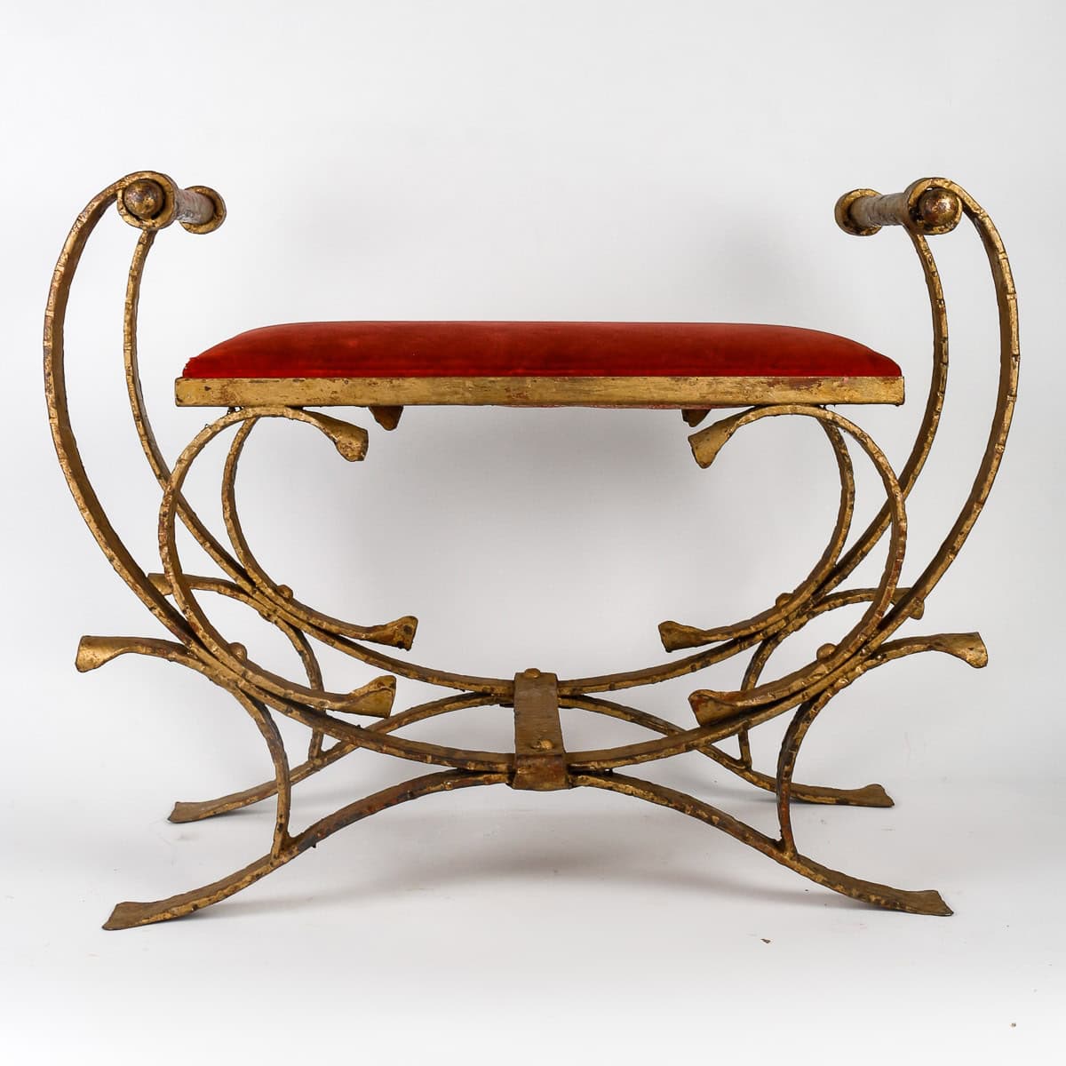 Paire de sièges curules Art Déco en fer forgé doré – Luxe des années 1930-1940