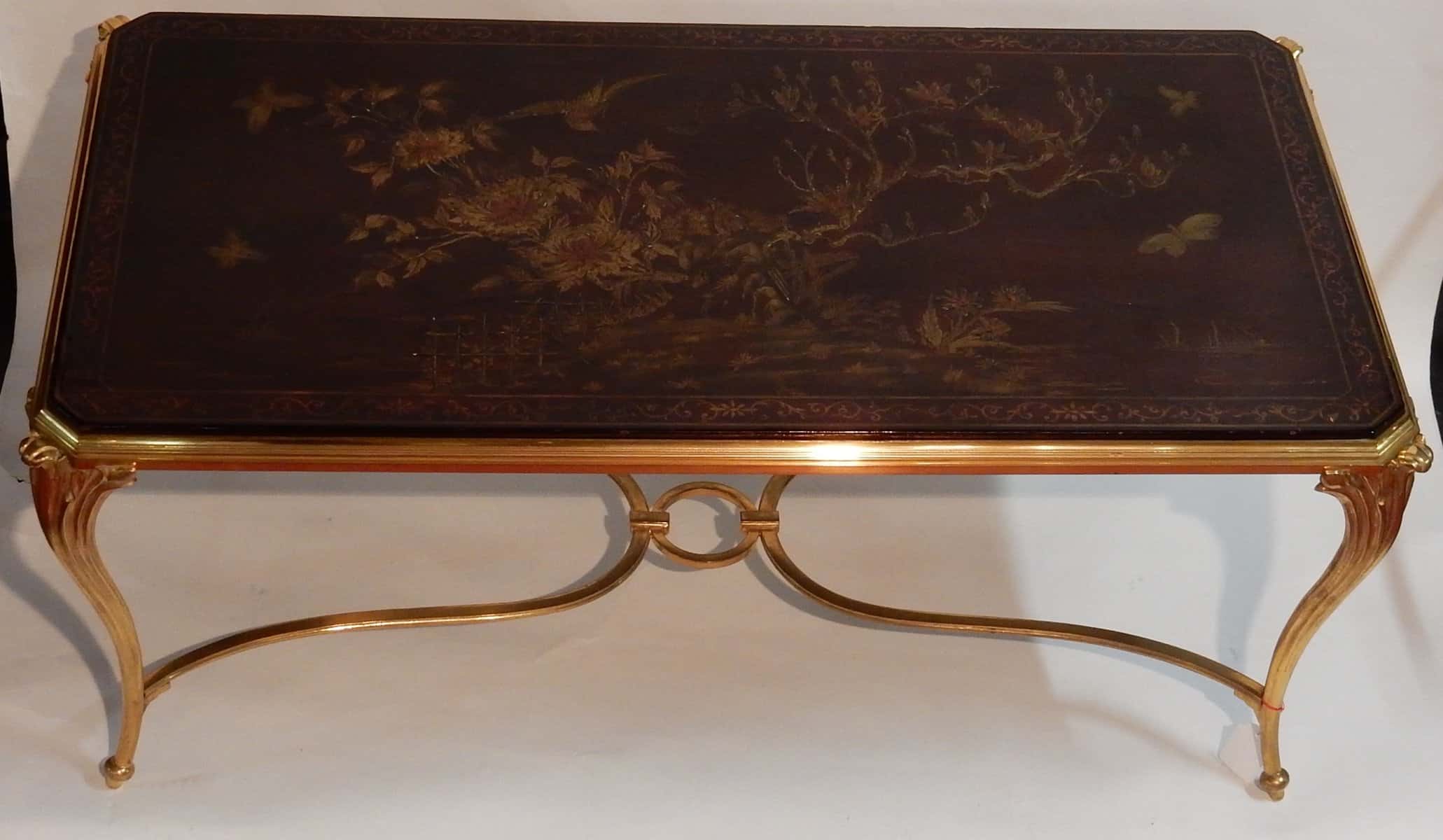 1940/50 Table Basse Plateau Laque de Chine Maison Baguès en Bronze Doré
