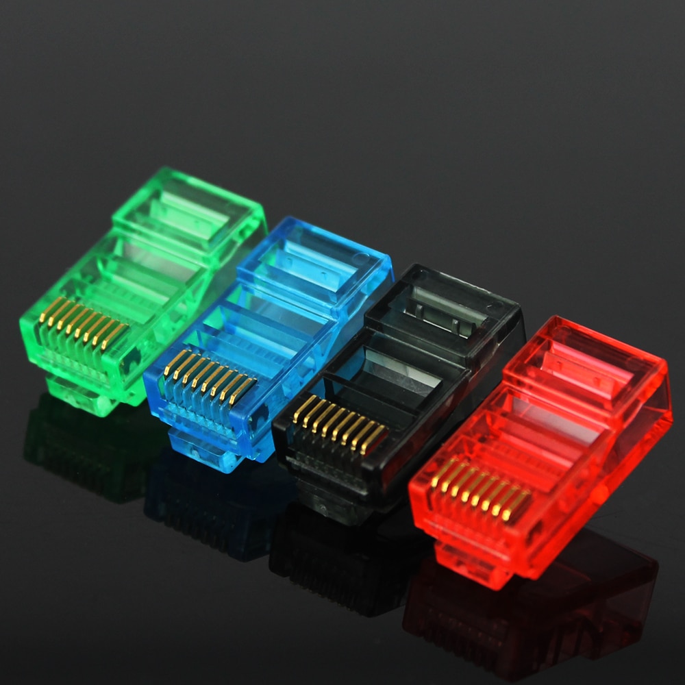 JONSNOW 20/50/100 pièces RJ45 câbles Ethernet Module prise connecteur réseau RJ-45 têtes en cristal Cat5 couleur Cat5e câble plaqué or