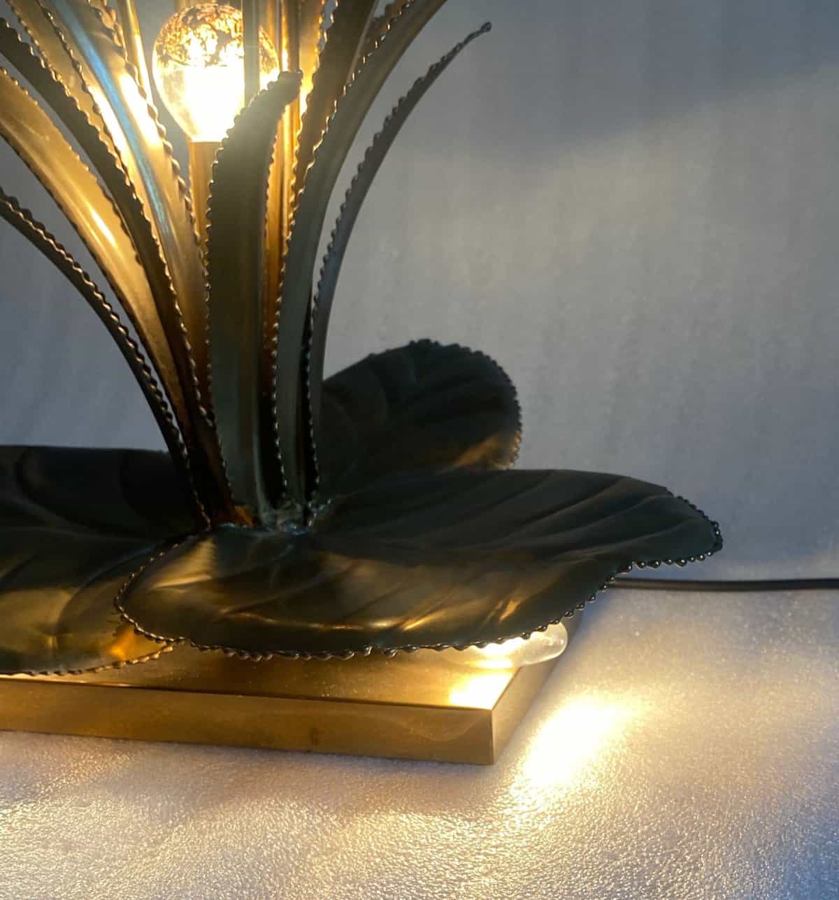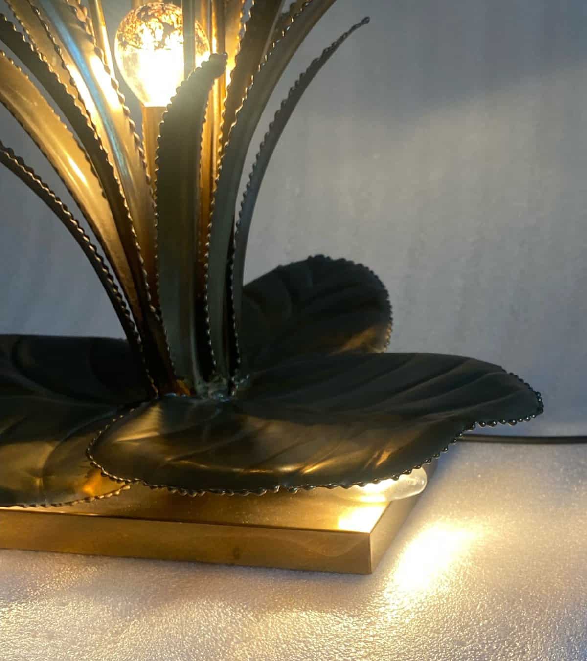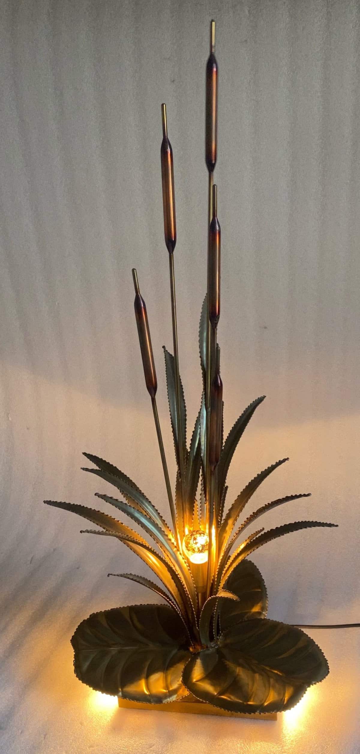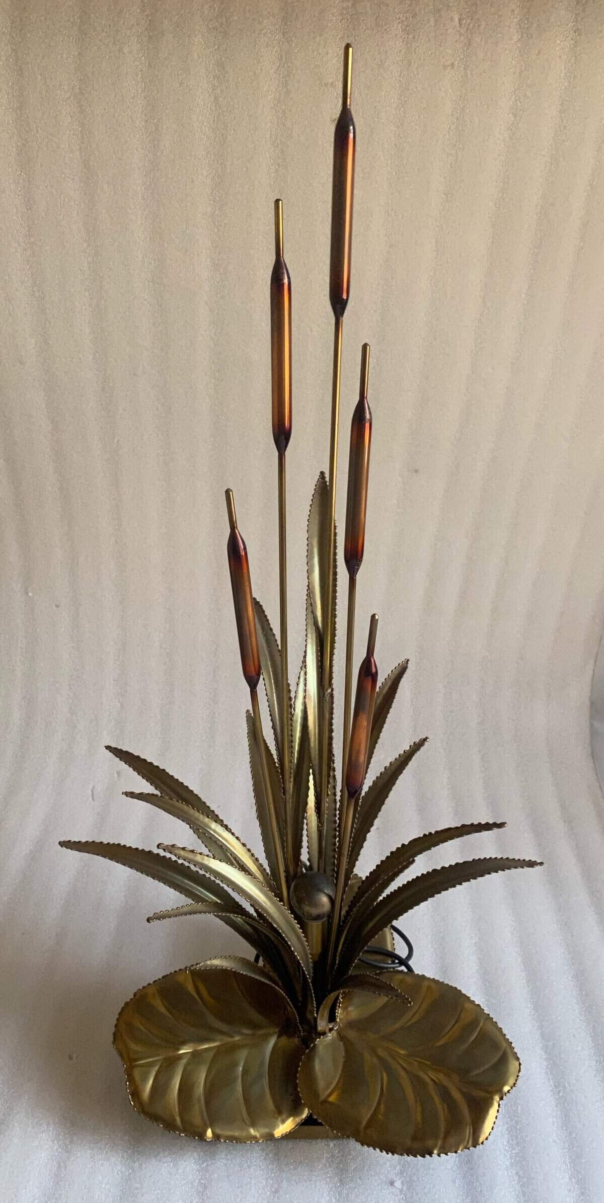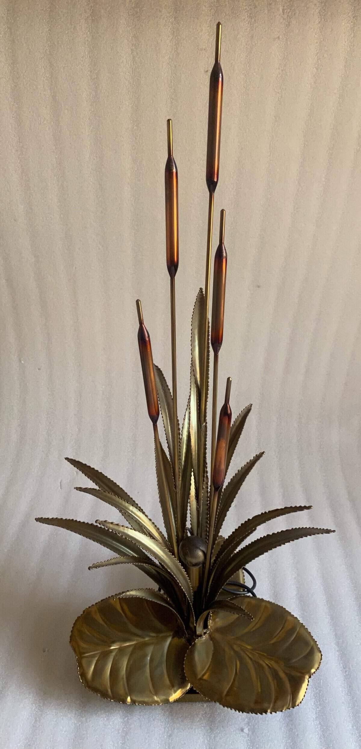 Lampe a 3 ampoules en laiton,decor de roseaux,style Maison Jansen