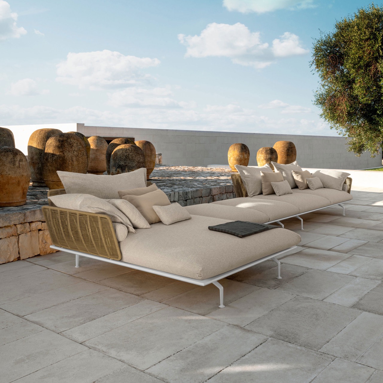 [vc_row][vc_column][vc_toggle title= »Description » style= »square_outline » color= »white » size= »lg » open= »true » css_animation= »none » custom_font_container= »tag:h3|font_size:16|text_align:left|color:%23ffffff|line_height:2.2″ custom_google_fonts= »font_family:Merriweather%3A300%2C300italic%2Cregular%2Citalic%2C700%2C700italic%2C900%2C900italic|font_style:400%20regular%3A400%3Anormal » custom_css_animation= »none » use_custom_heading= »true » el_id= »1500800021773-f821bedc-936c »]Le Canapé Cruise Alu de Talenti dessiné par le couple célèbre Ludovica + Roberto Palomba, affiche des formes simples et raffinées. Les différents modules de haut de qualité inaugurent un nouveau mode de vie en plein air avec une priorité aux sensations de bien-être, de chaleur et de confort.