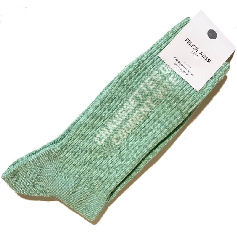 Donnez de l’élan à vos pas avec les chaussettes de la marque Félicie Aussi ! Notre modèle pour homme, avec son message « Qui Courent Vite », est parfait pour les sportifs. Ces chaussettes sont à la fois jolies et confortables.