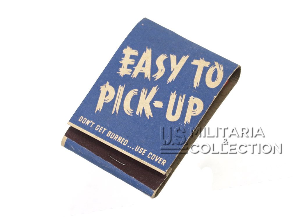 Pochette d’allumettes V.D. Easy to Pick-up Don’t get burned… Use cover, origine Seconde Guerre mondiale. Pochette d’allumettes destinée à la prévention des maladies vénériennes (V.D. pour Venereal Disease). L’armée américaine produisit un nombre important de documents et d’équipements contenant des messages sur les maladies vénériennes. Pour exemple, les allumettes incluses dans les cartons de Ration K,…