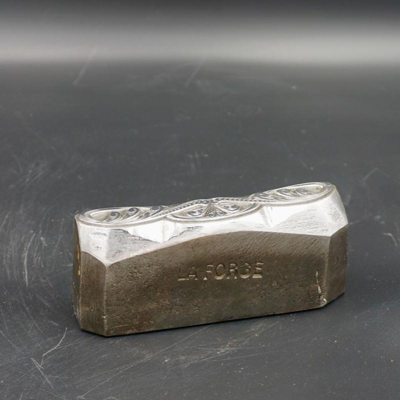 L’estampage consiste à imprimer un relief par déformation sur une plaque de métal, généralement du cuivre ou du laiton mais aussi de l’argent ou de l’or.