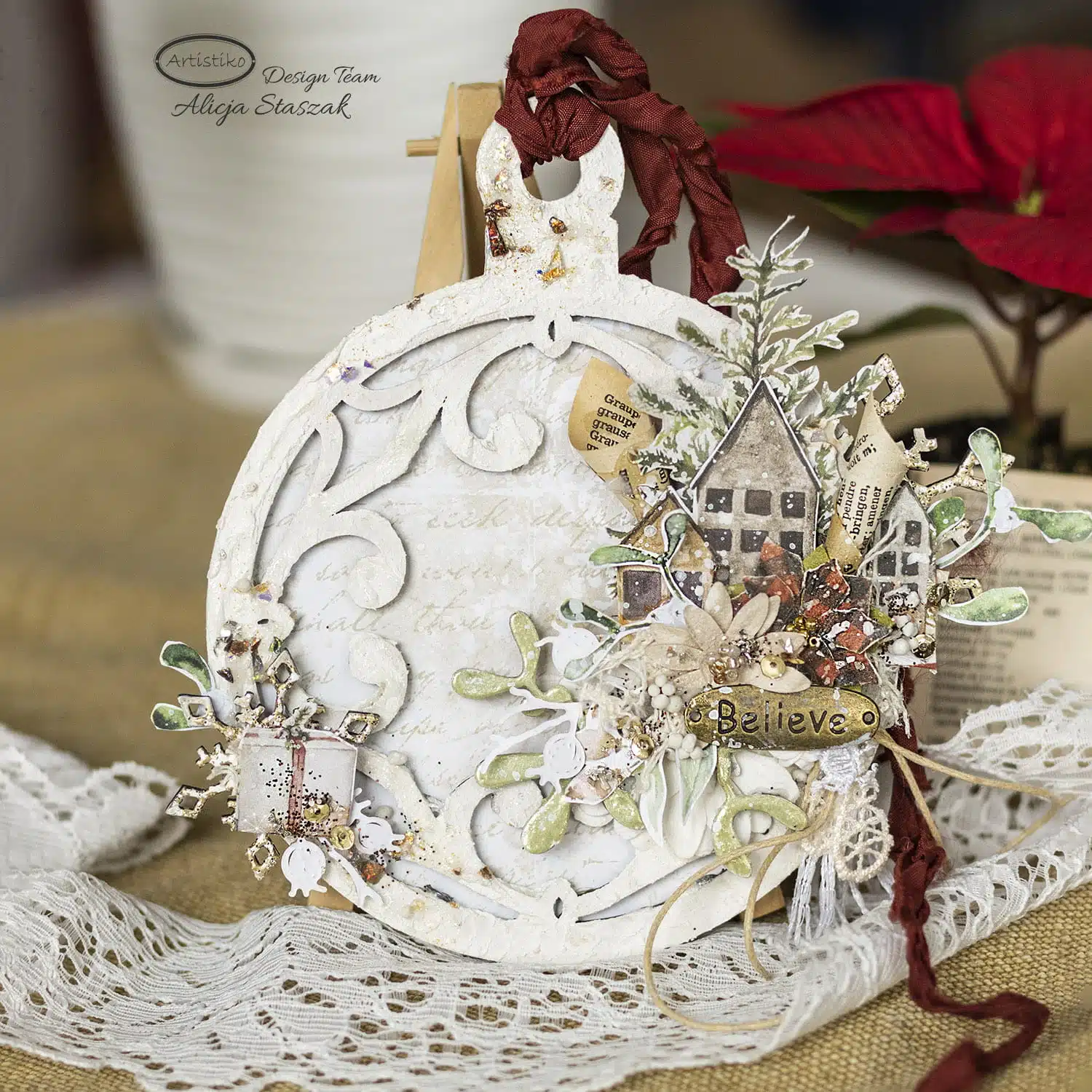 Enfin, vous pouvez réaliser un effet de patines avec de la peinture, de l’encre permanente, des produits de “dorure” (cires, flakes, feuilles de métal,…)