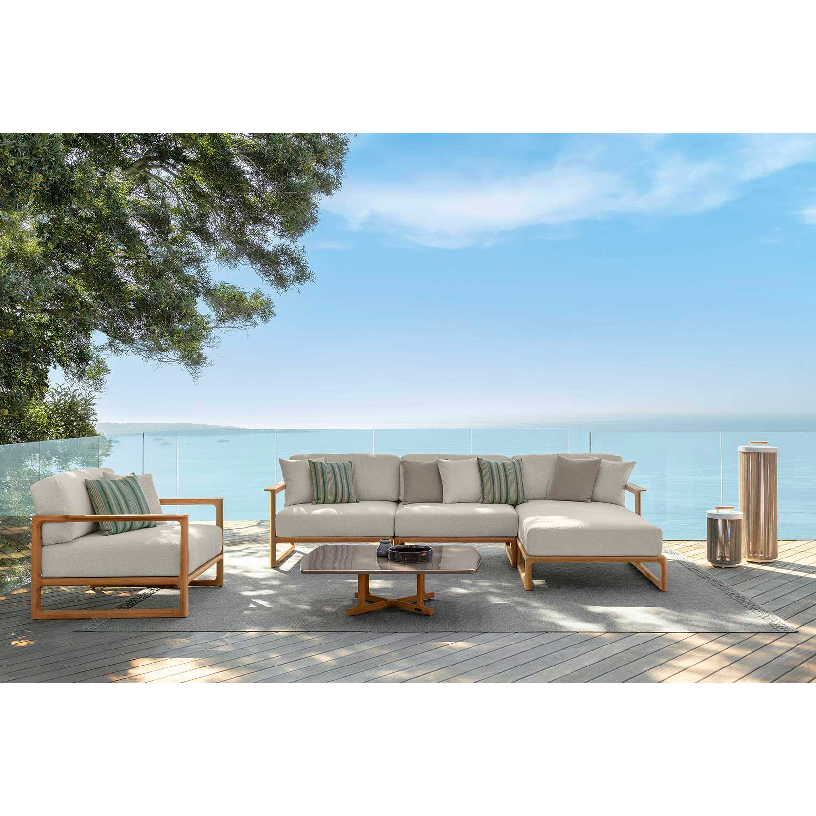 [vc_row][vc_column][vc_toggle title= »Description » style= »square_outline » color= »white » size= »lg » open= »true » css_animation= »none » custom_font_container= »tag:h3|font_size:16|text_align:left|color:%23ffffff|line_height:2.2″ custom_google_fonts= »font_family:Merriweather%3A300%2C300italic%2Cregular%2Citalic%2C700%2C700italic%2C900%2C900italic|font_style:400%20regular%3A400%3Anormal » custom_css_animation= »none » use_custom_heading= »true » el_id= »1500800021773-f821bedc-936c »]La table basse Thea de Talenti est conçue pour s’intégrer parfaitement dans les espaces extérieurs élégants et fonctionnels. Réalisée avec une structure en teck qui met en valeur sa stabilité et son design raffiné, la table basse se distingue par son plateau en fibre de verre aux formes douces et légèrement arrondies, ajoutant une touche contemporaine et harmonieuse à l’ensemble.