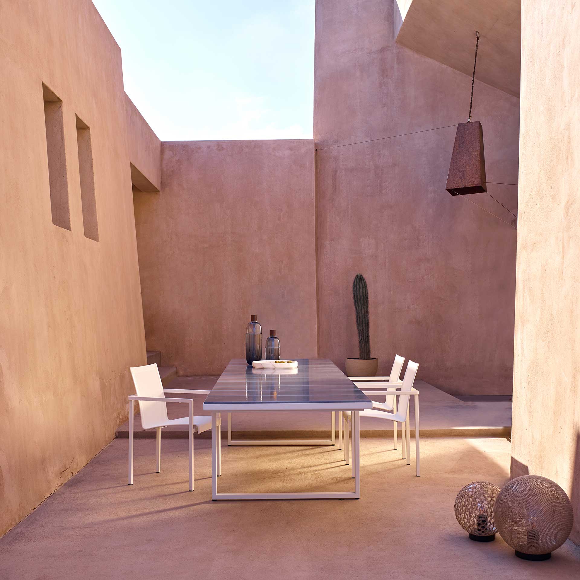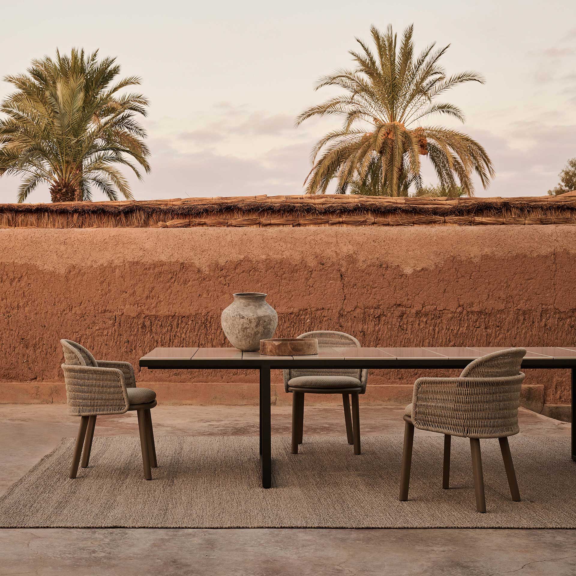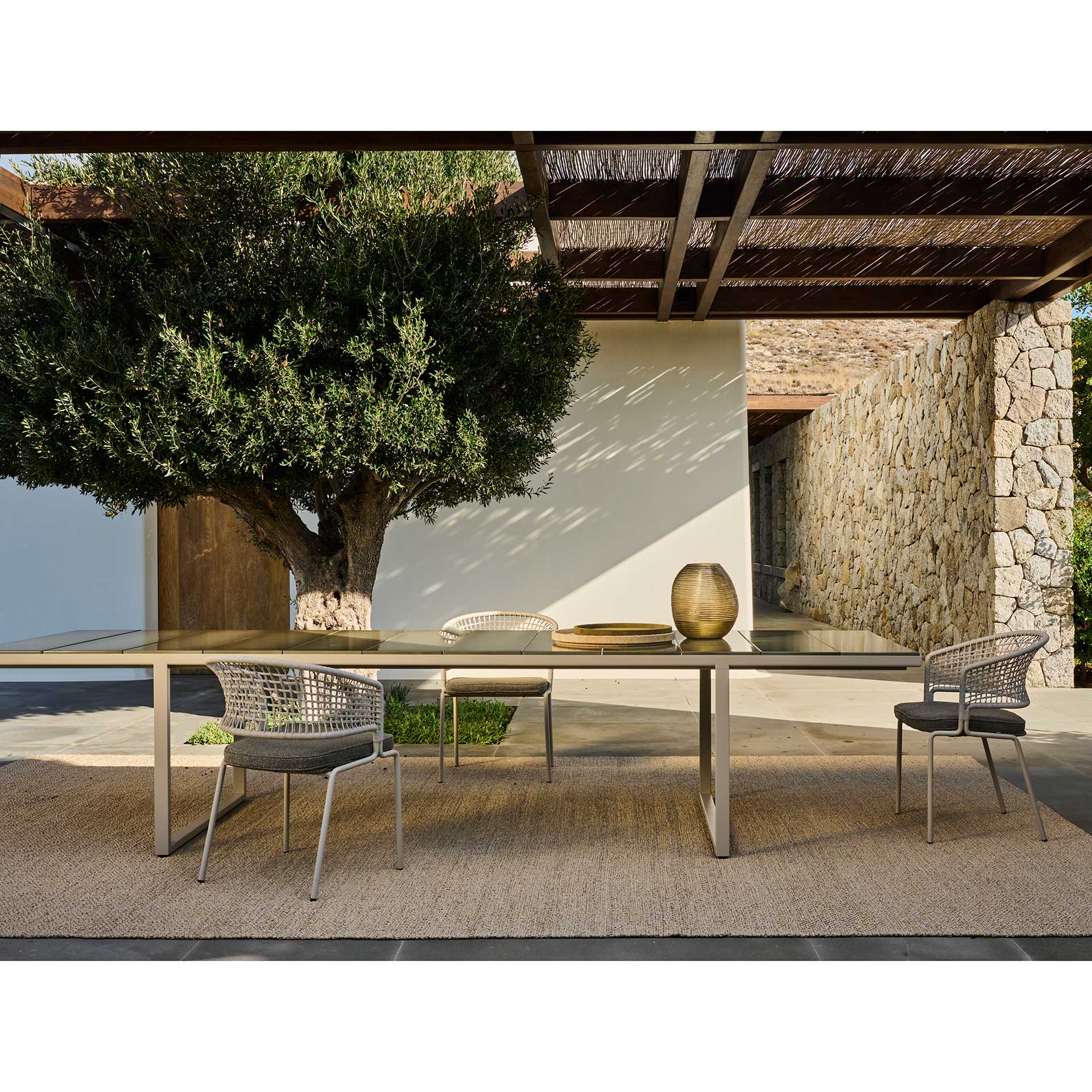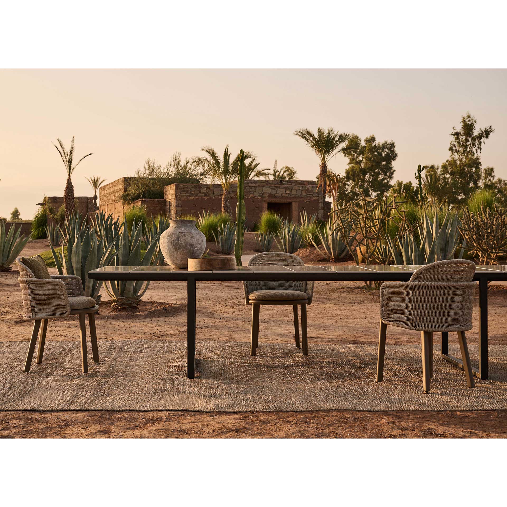 Avec ses 3,52 mètres de long, la table Nox accueille jusqu’à 14 convives dans un confort raffiné.