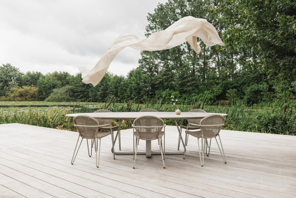 Atouts : la table en céramique Curve de JOLI est design et ne se raye pas, 100% résistant aux UV, imperméable aux graisses et aux acides, ne craint pas le gel, pas de traces de doigts, poussière invisible.