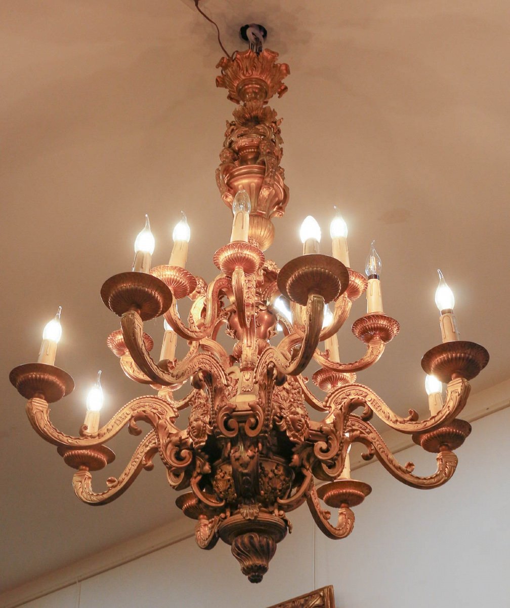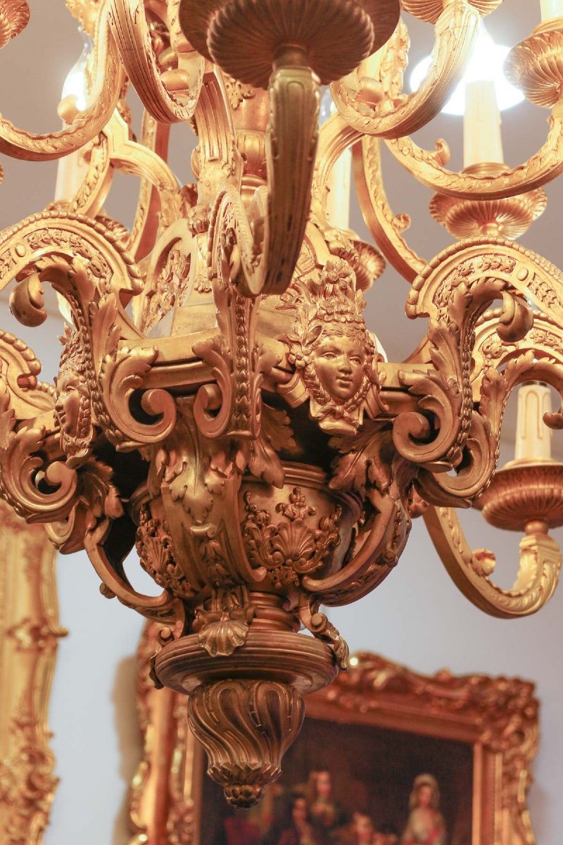 d’après le modèle d’André-Charles Boulle. Ce lustre de style Louis XIV, bien fondu, est d’après un modèle important attribué à André-Charles Boulle, dans la collection du Musée du Louvre (OA 5101). Voir Hans Ottomeyer « Vergoldete Bronzen I » ; p. 13, Fig 1.6.5, pour une illustration de ce lustre.