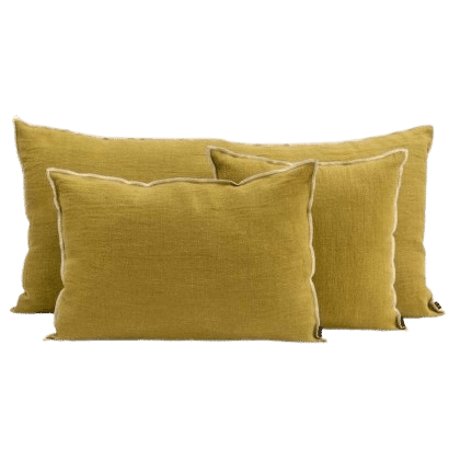 Housse Coussin Chenna en lin décliné en sublime différentes teintes profondes. N’hésitez pas à mixer les tailles et les couleurs, la housse d’édredon est également à retrouver sur notre e-shop.